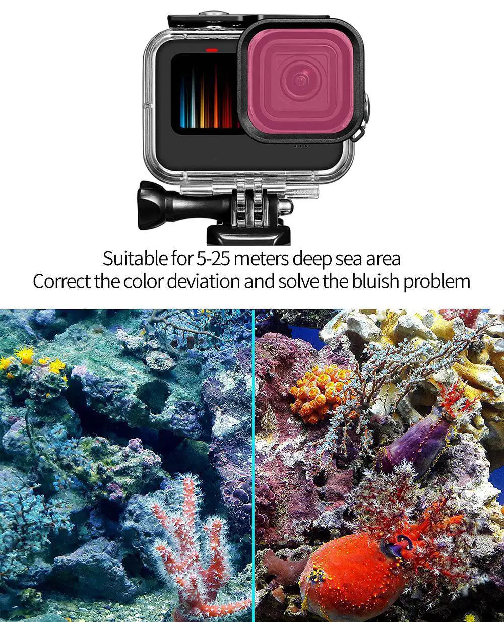 Filtros de cor para gopro 11/10/9 caso impermeável.